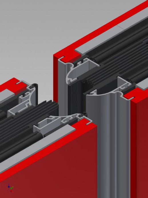 Zelfdragende verticale aluminium koker profielen: De hechte en gecentreerde verbinding tussen de elementen wordt verkregen met sterke magneetbanden.